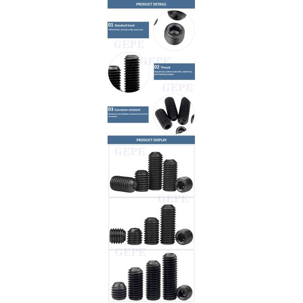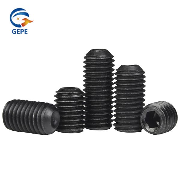 DIN916 Black Oxide Hex Socket Carbon Steel Grade 12.9 33H 45H Set Screw With Cup Point Hex Concave Point Grub Screws