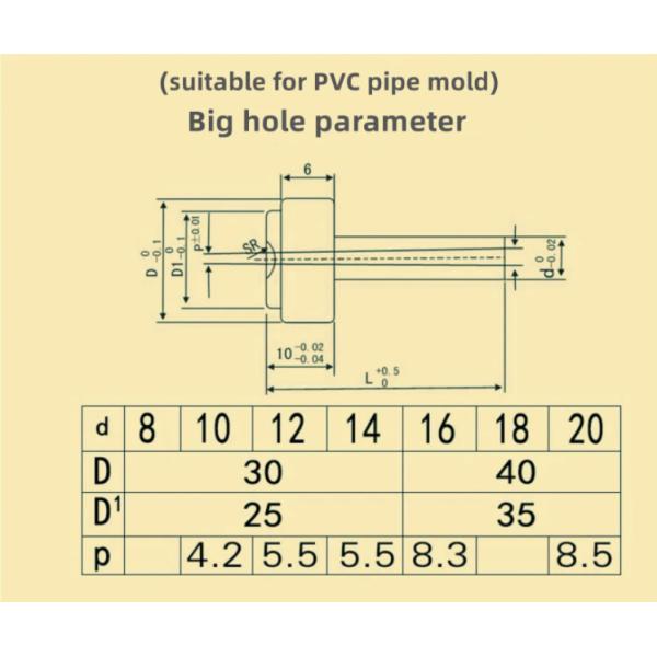 | Product Material | HPM1/SKD61/DC53/ SAE 6145 | Taper | 0,5°, 1° and 1°30' |